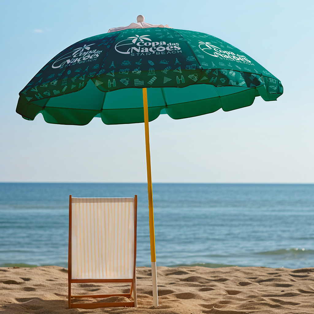 A bola remete diretamente ao esporte, trazendo movimento, competitividade e energia. Já o coqueiro simboliza o clima praiano, descontraído e acolhedor, que está no DNA da modalidade.