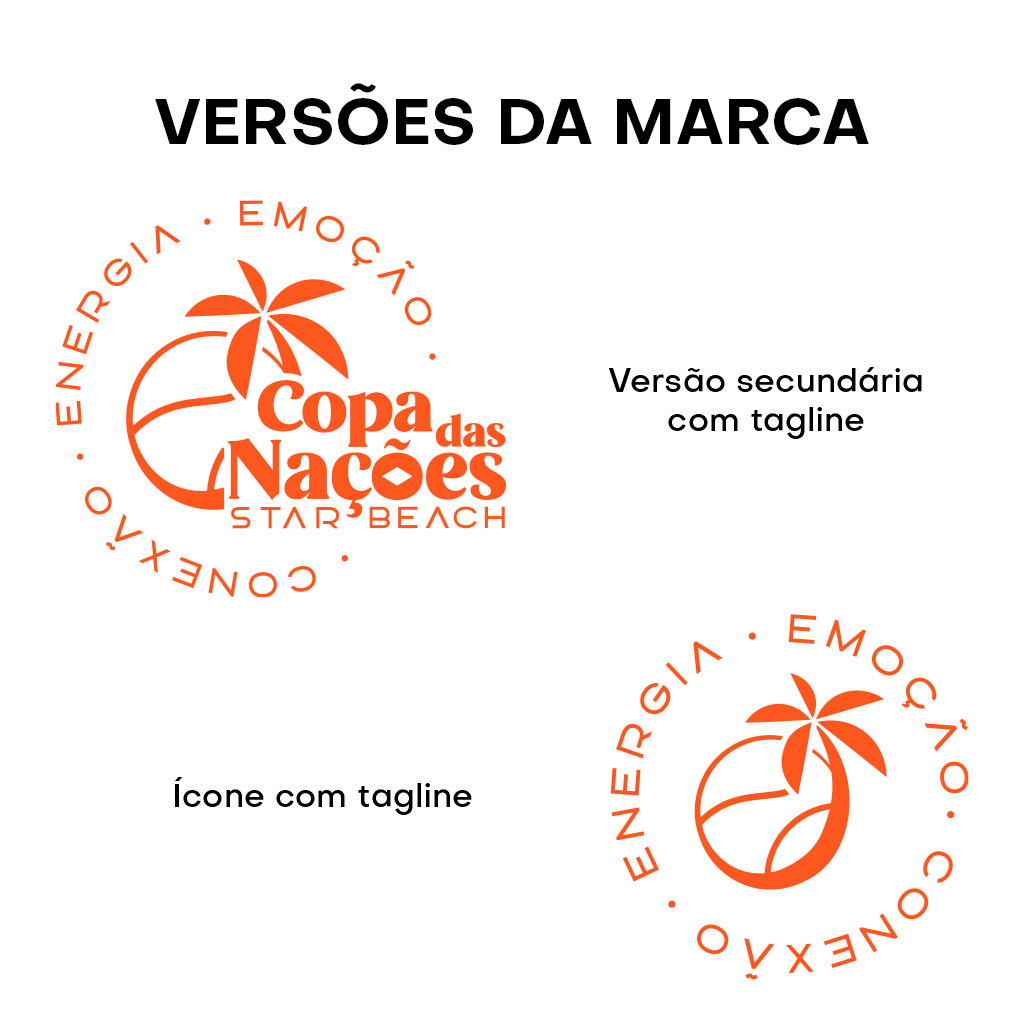 A identidade visual da Copa das Nações foi pensada para refletir a energia vibrante do esporte, o espírito acolhedor das praias e a diversidade de culturas que se encontram no evento. As cores escolhidas trazem força, movimento e impacto, comunicando com clareza a essência da marca.